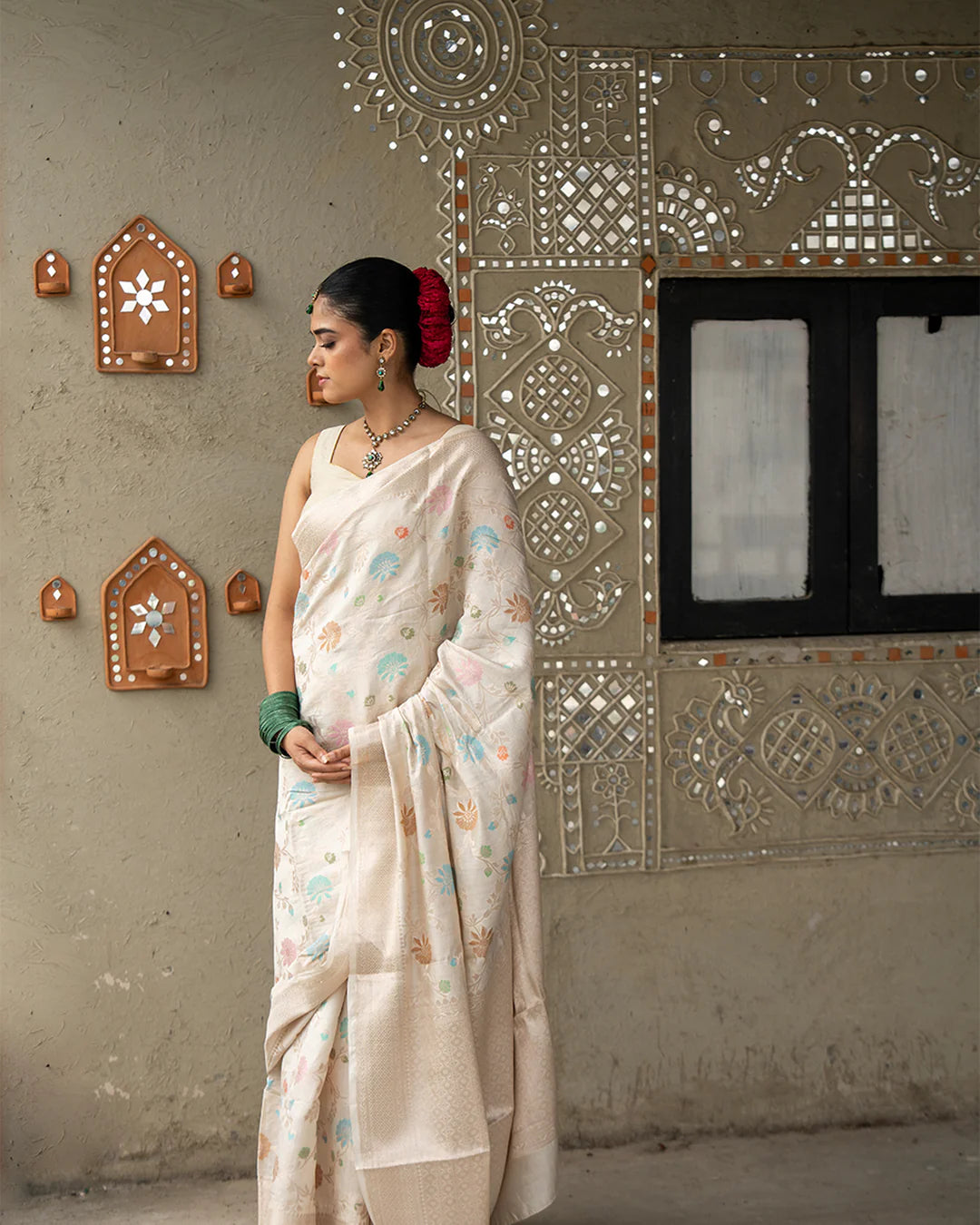 Pure Khaddi Creap Silk Banarasi Saree Handloom