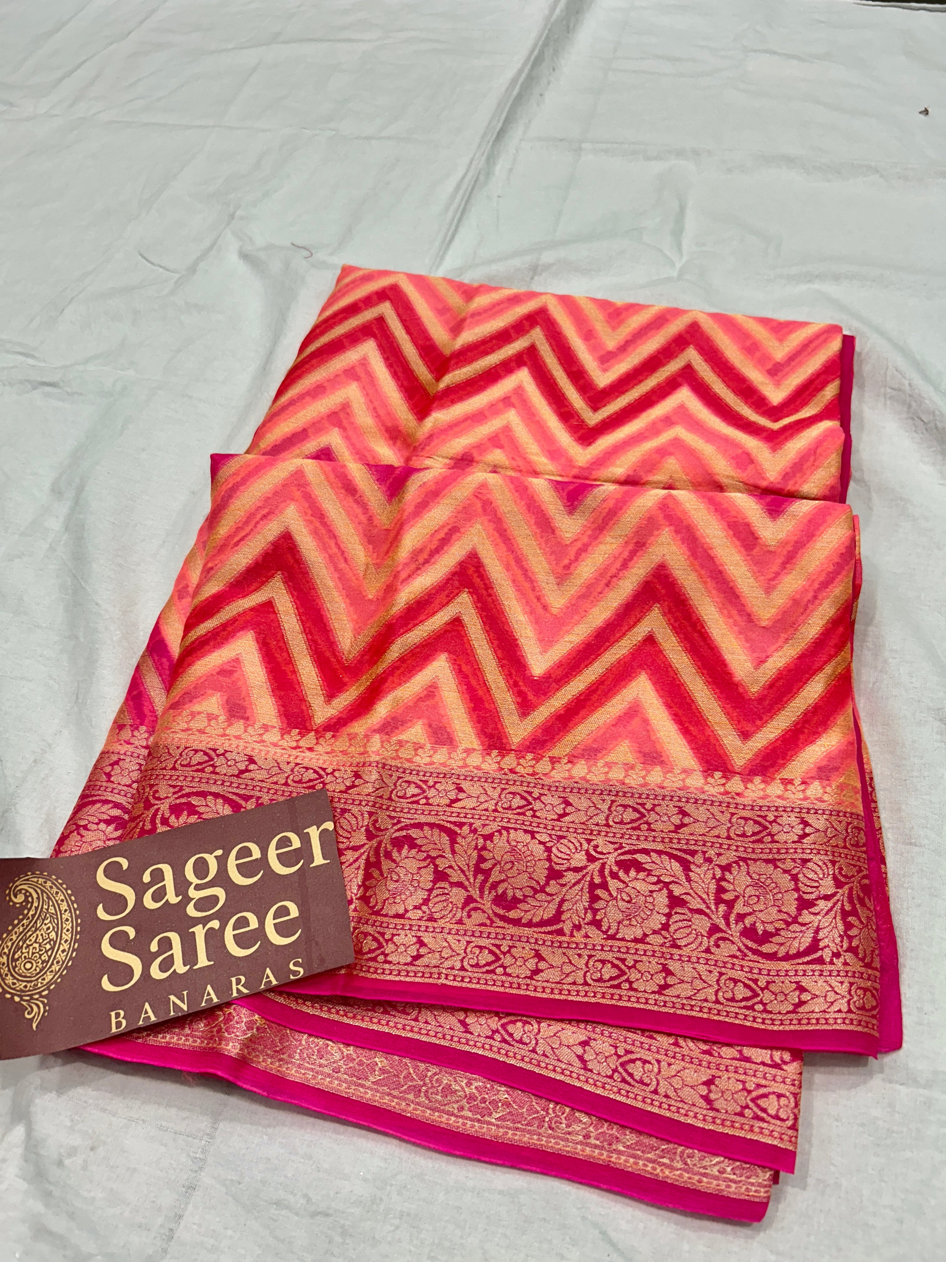 Pure Khaddi Georgette Banarasi Saree Handloom With Water Zari